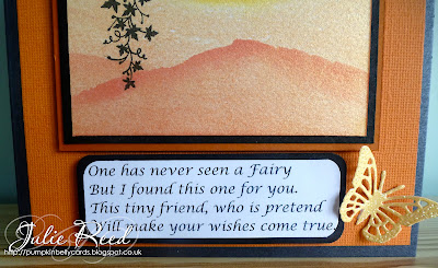 I have seen the sentiment I added several times, but most recently on a trip to the Garden Centre and thought it would be perfect, so I added it to my umbrella then sprayed it with irridescent sparkle spray.